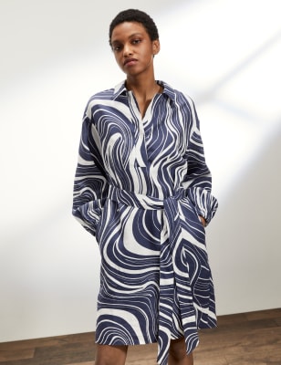Pure Linen Printed V Neck Smock Dress Jaeger M S